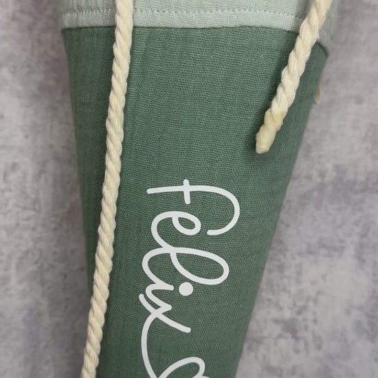 Diese zauberhaften Kindergartenschultüten werden liebevoll aus Musselin genäht und mit einer schlichten Kordel zugeschnürt.