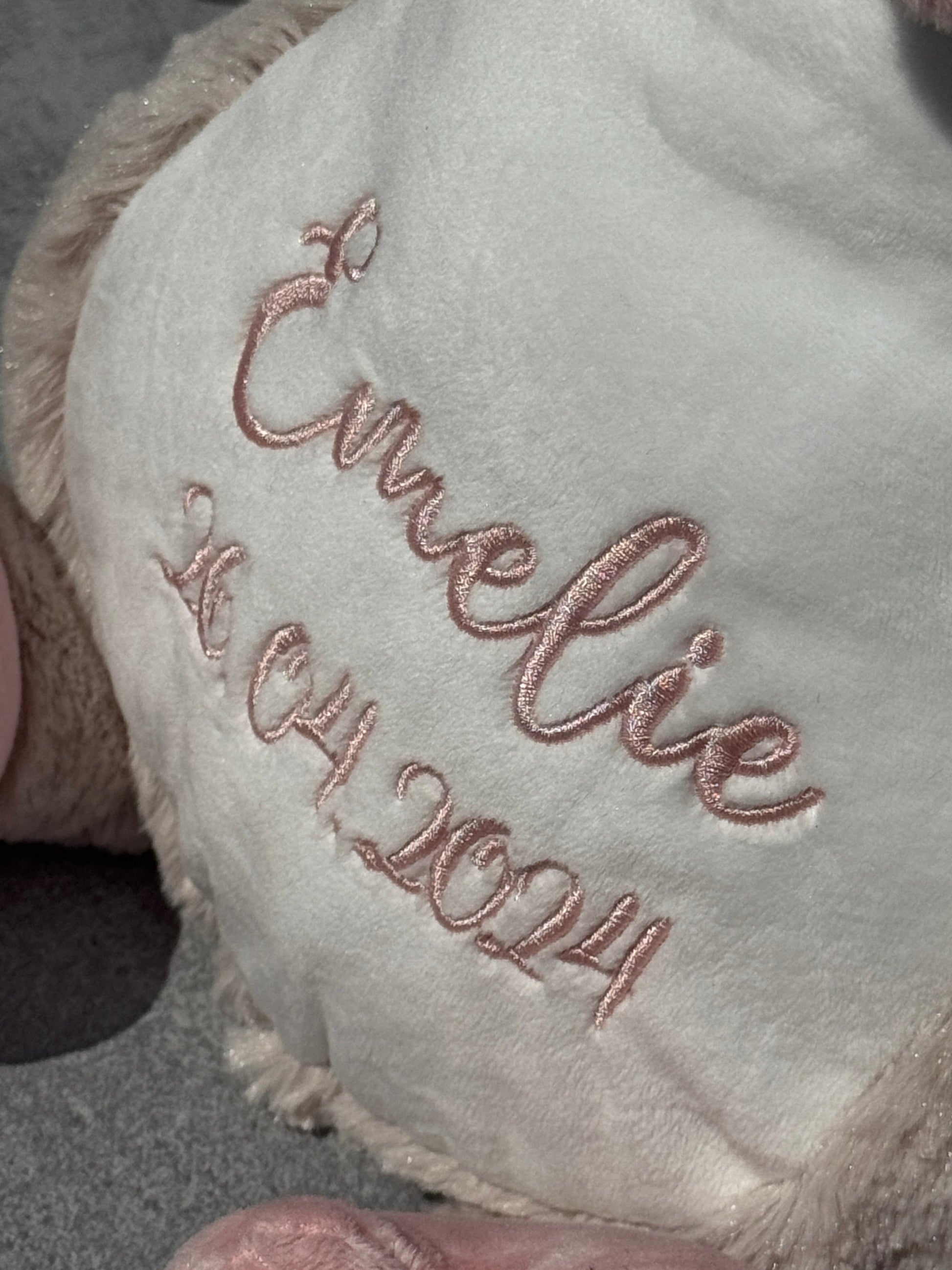 Diese liebevoll bestickte, kuschelige Eule ist etwa 40 cm groß und wird schnell zum besten Freund jedes Kindes. Aus weichem 100% Polyester Plüsch gefertigt, bietet sie höchsten Kuschelkomfort. Die Füllung lässt sich herausnehmen, was das Reinigen erleichtert. Besonders charmant: Du kannst die Eule mit dem Namen und optional dem Geburtsdatum personalisieren – so wird sie zu einem einzigartigen Begleiter voller Liebe und Erinnerungen.