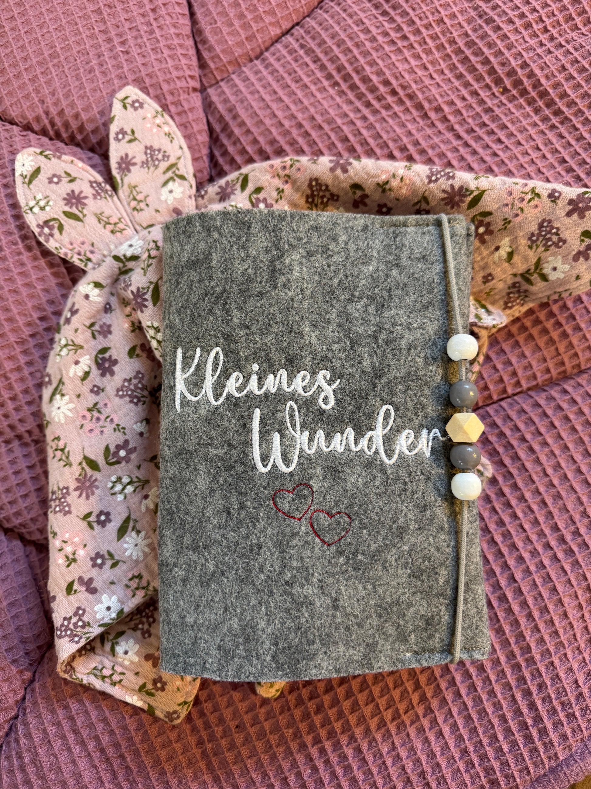 Diese liebevoll bestickte Mutterpasshülle mit der Aufschrift kleines Wunder aus weichem Filz begleitet dich spielerisch durch die Schwangerschaft. Mit einem praktischen Fach auf der Rückseite für den Impfausweis hast du alle wichtigen Dokumente stets griffbereit. Ein handgemachtes Accessoire, das nicht nur schützt, sondern auch Freude macht!